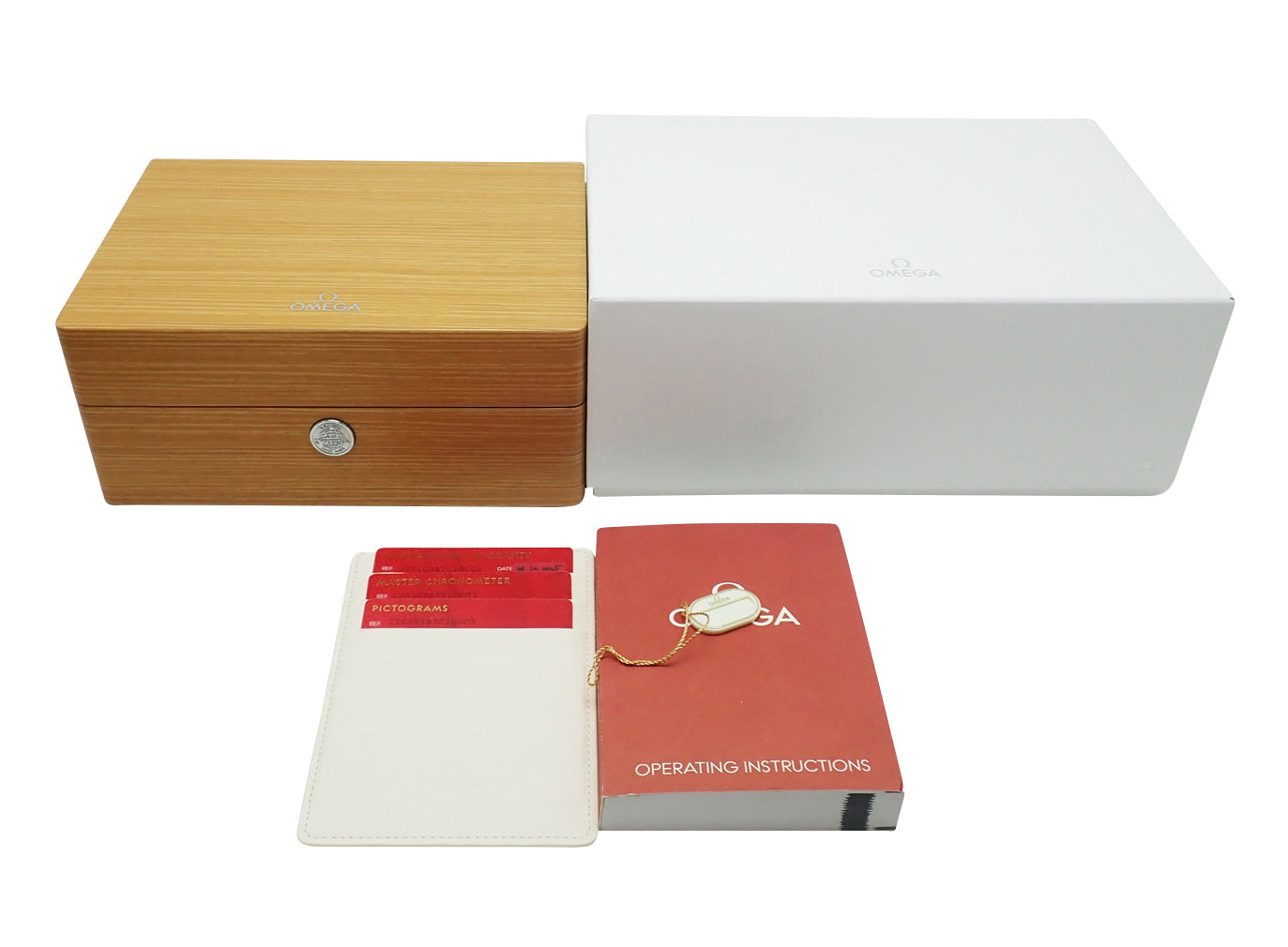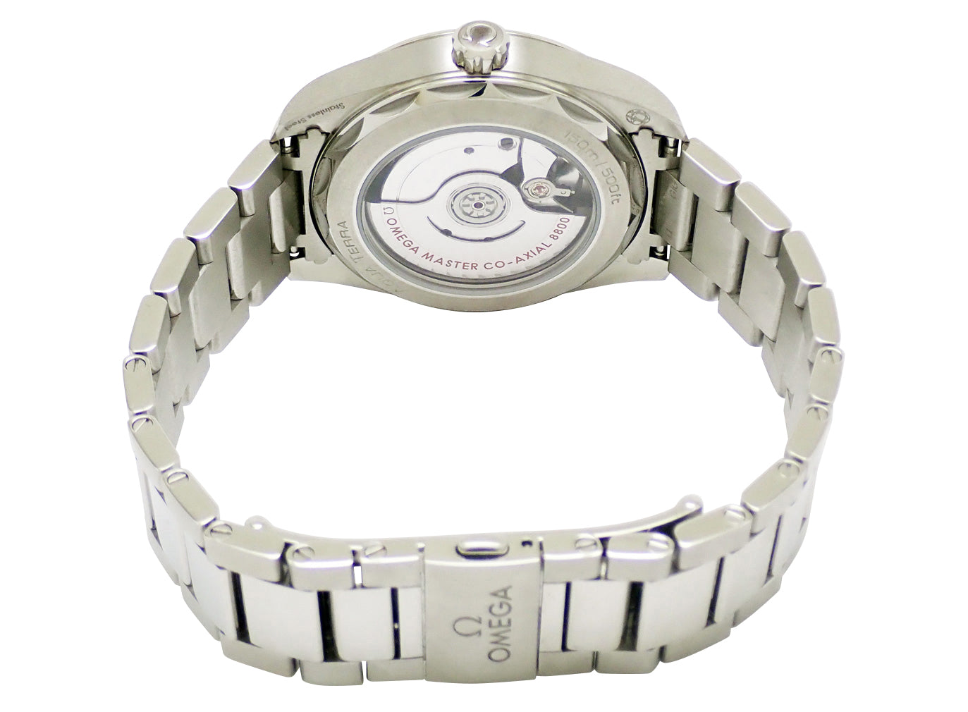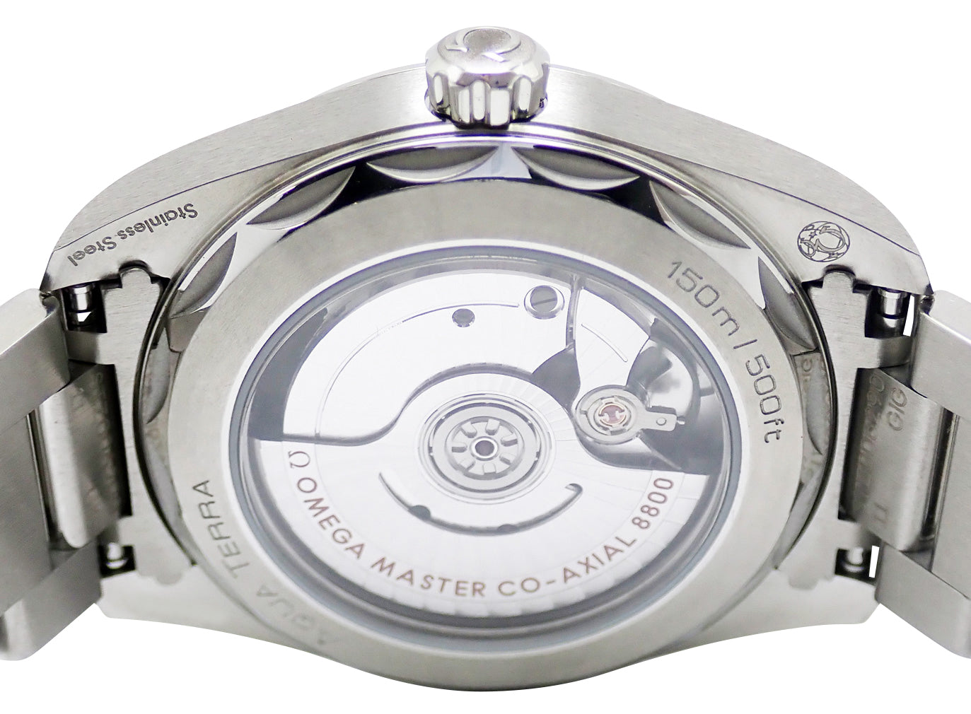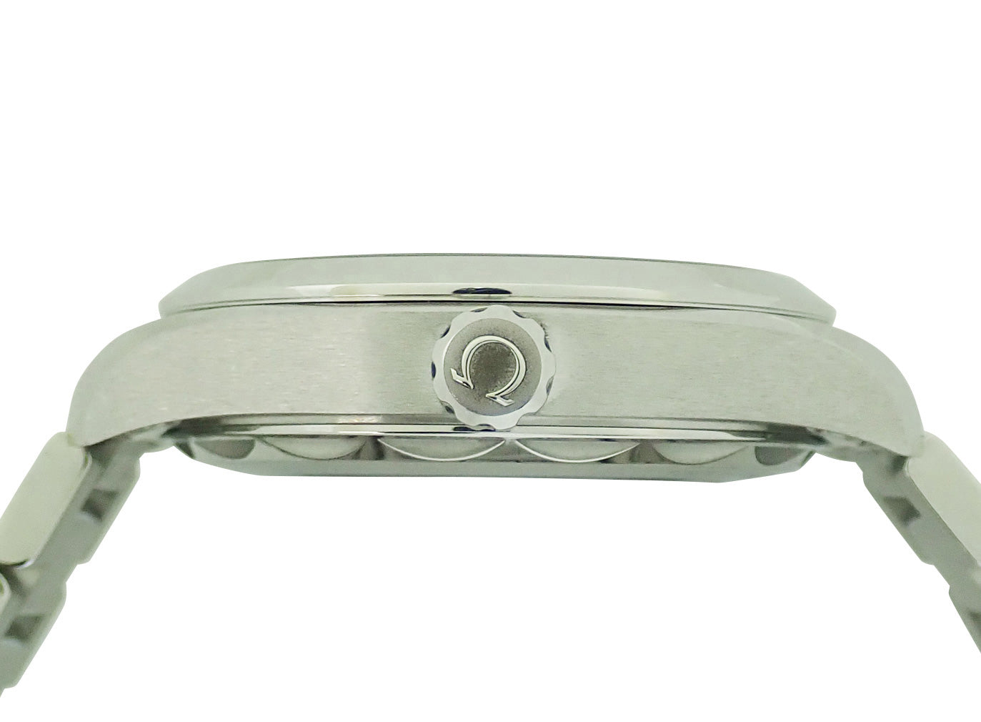 オメガと海の豊かな歴史にオマージュを捧げる「シーマスター アクアテラ」。ケースバックが波模様のデザインで縁どられた、シンメトリックな38mmのステンレススティール製モデルです。サンブラッシュ仕上げのグリーンPVDダイアルには、豪華ヨットのウッドデッキをイメージさせる印象的な横ストライプの「チーク」パターンが施されています。ロジウム仕上げ針とインデックスにはホワイトのスーパールミノヴァが塗布され、6時位置には日付表示が備えられています。スイス連邦計量・認定局(METAS)が認めた最高水準を誇るオメガ コーアクシャル マスター クロノメーター キャリバー 8800搭載。