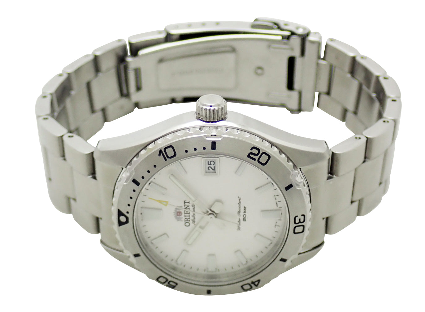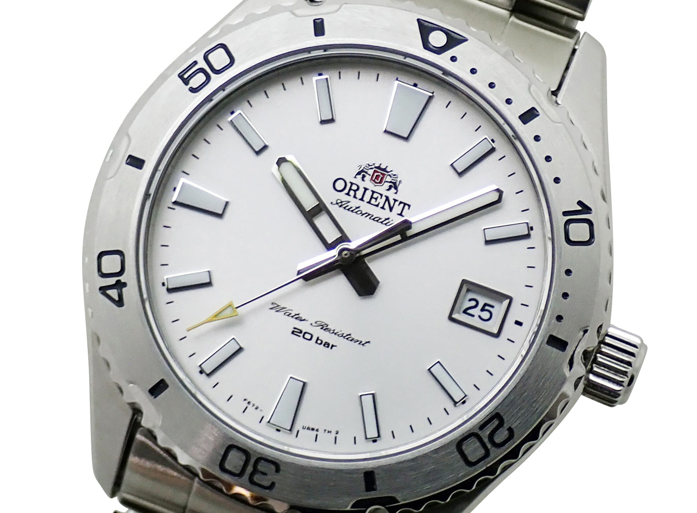 SS。銀文字盤。自動巻。ケース径39.9mm・腕周り20.5cm。税込定価¥48,400。箱・保証書(2025/10)付。