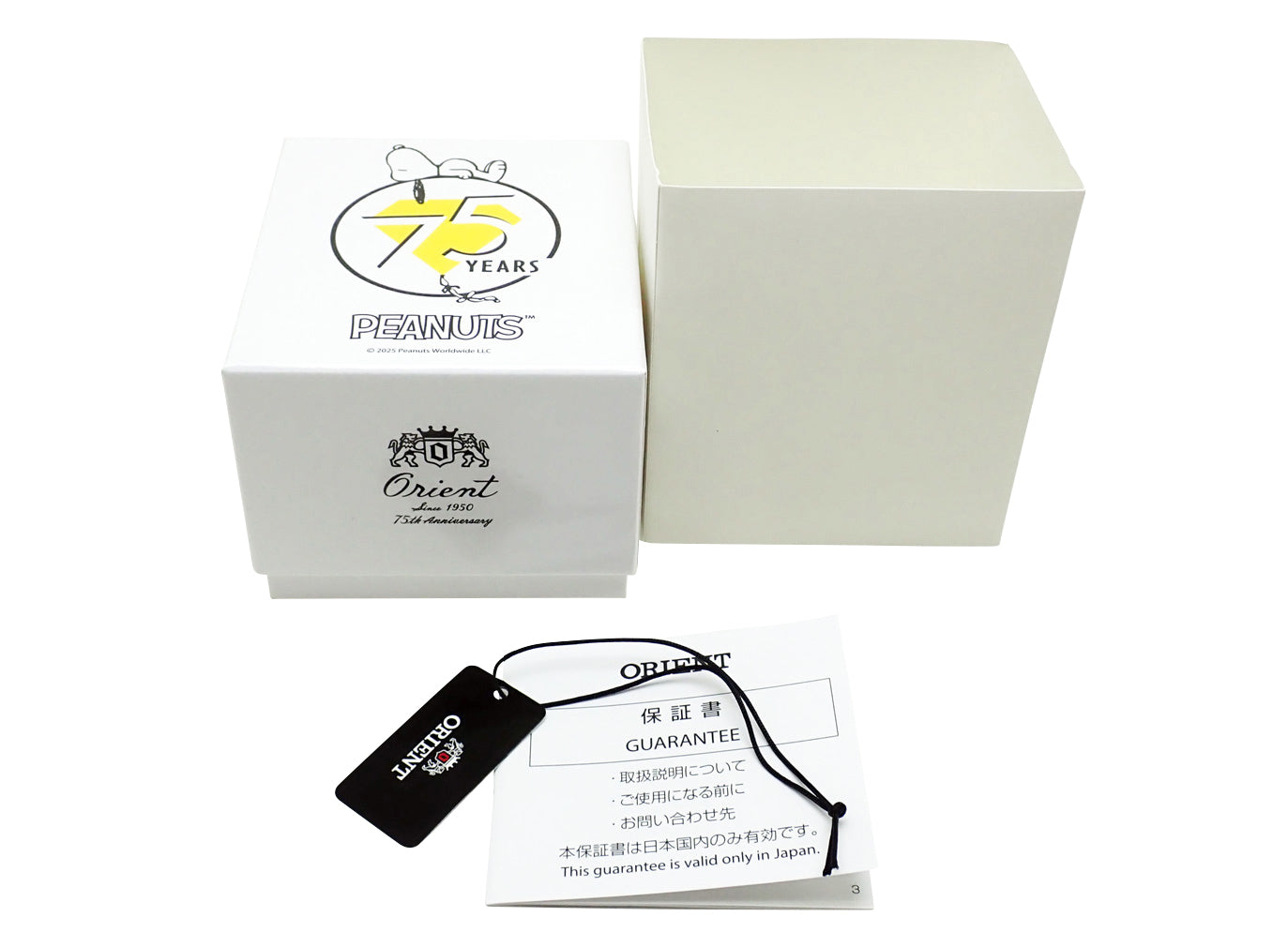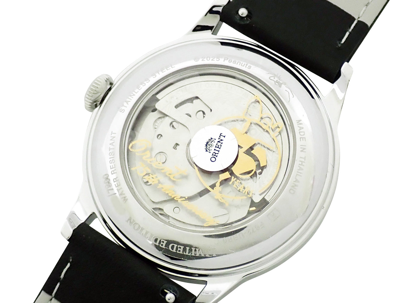 2025年に75周年を迎える「Orient」と、同じく75周年となる世界中で愛されているコミック「Peanuts」のコラボレーションモデルが登場。ケース裏面には「Orient 75th Anniversary」の文字と「Peanuts」75周年のマーク、ウッドストックの刻印、数量限定シリアル番号の刻印が記されており、特別感のある仕上がり。「Peanuts」に登場するウッドストックやスヌーピーをあしらった今回のオリジナルデザインは、「Orient」と「Peanuts」の両ファンにとって見逃せない逸品です。Cal.F6724搭載。海外向けに準備していた一部商品を、国内でも数量限定で販売されたモデル。国内販売分と型番は異なりますが、仕様は同一です。