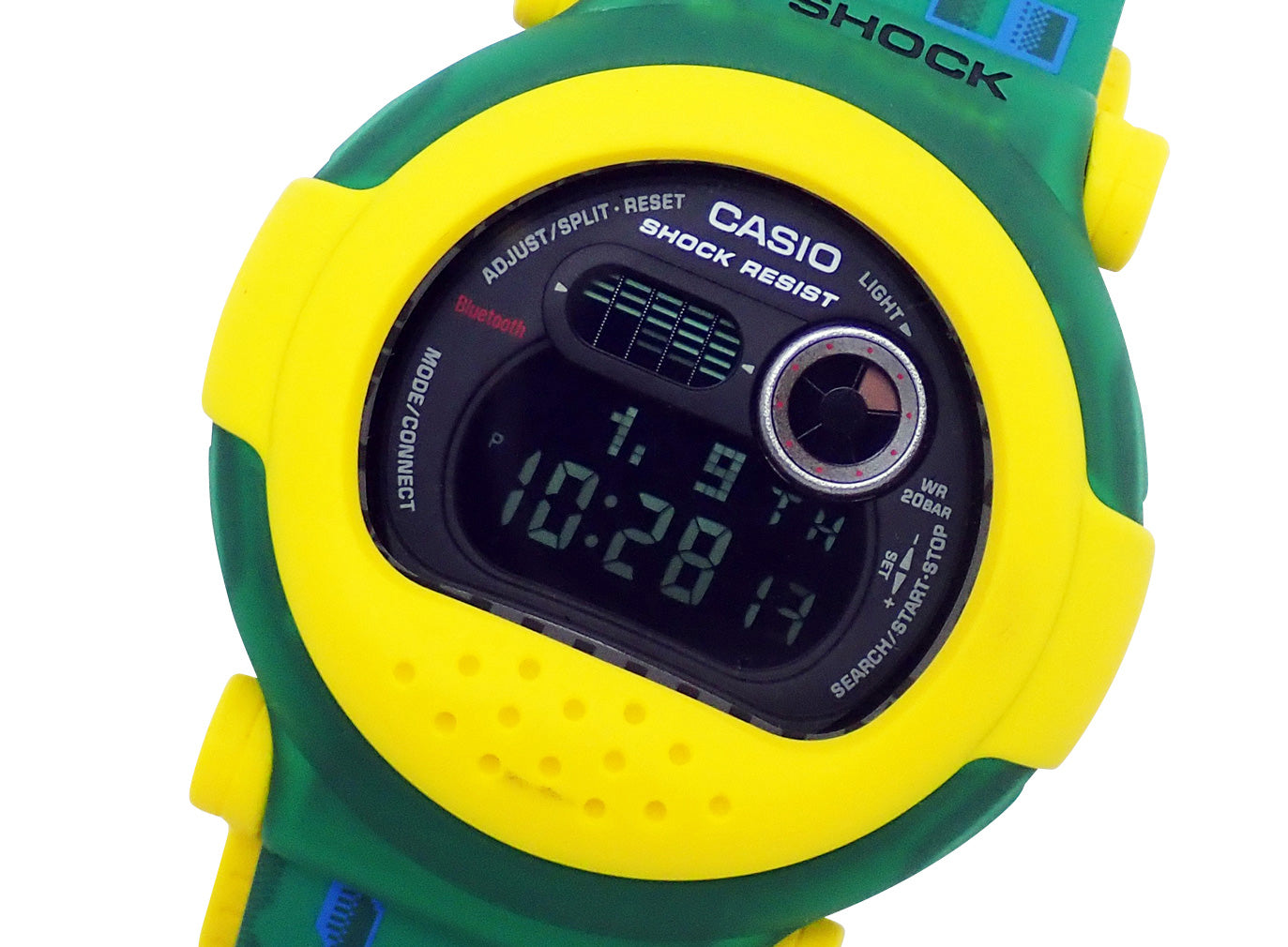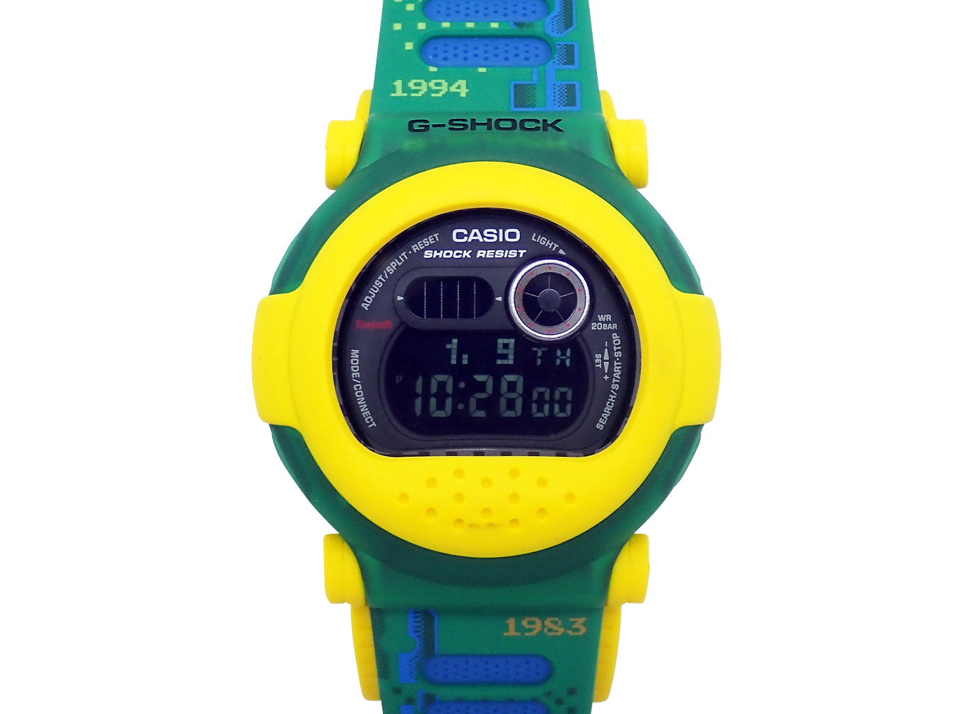 G-B001は、1994年にCapsule Toughをコンセプトに誕生したDW-001を進化させたモデルで、オリジナルのフォルム、耐衝撃構造はそのままに、カーボンコアガード構造を採用し、樹脂ベゼルのケースを更にベゼルでガードするユニークなデザインを実現しました。80年代のレトロカルチャーやゲームのグラフィックをイメージしたデザインを採用。カプセルベゼルは取り外し可能で、1本で2つのデザインを楽しむことができます。