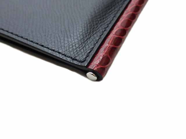 ヴォーグレネ・ブラックとアリゲーターシャイニー・レッドを使用。張りのある質感が特徴の型押しヴォーグレネレザーとエキゾチックレザーのコンビネーション。