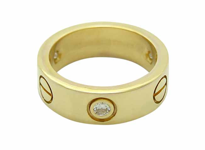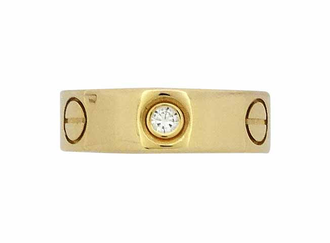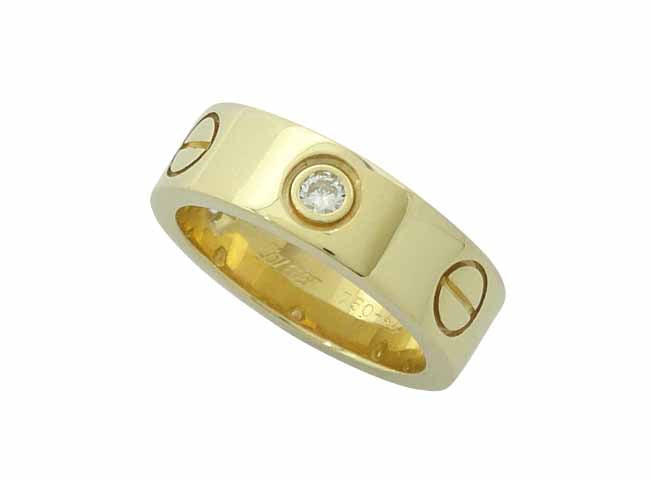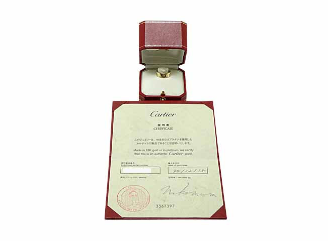 カルティエ ラブリング ハーフダイヤ K18YG 中古。K18YG ダイヤ。#6.5(47)。7.6g。箱・証明書(1998/12)付。