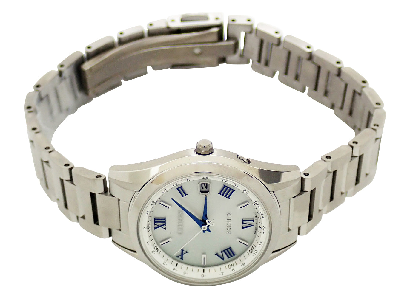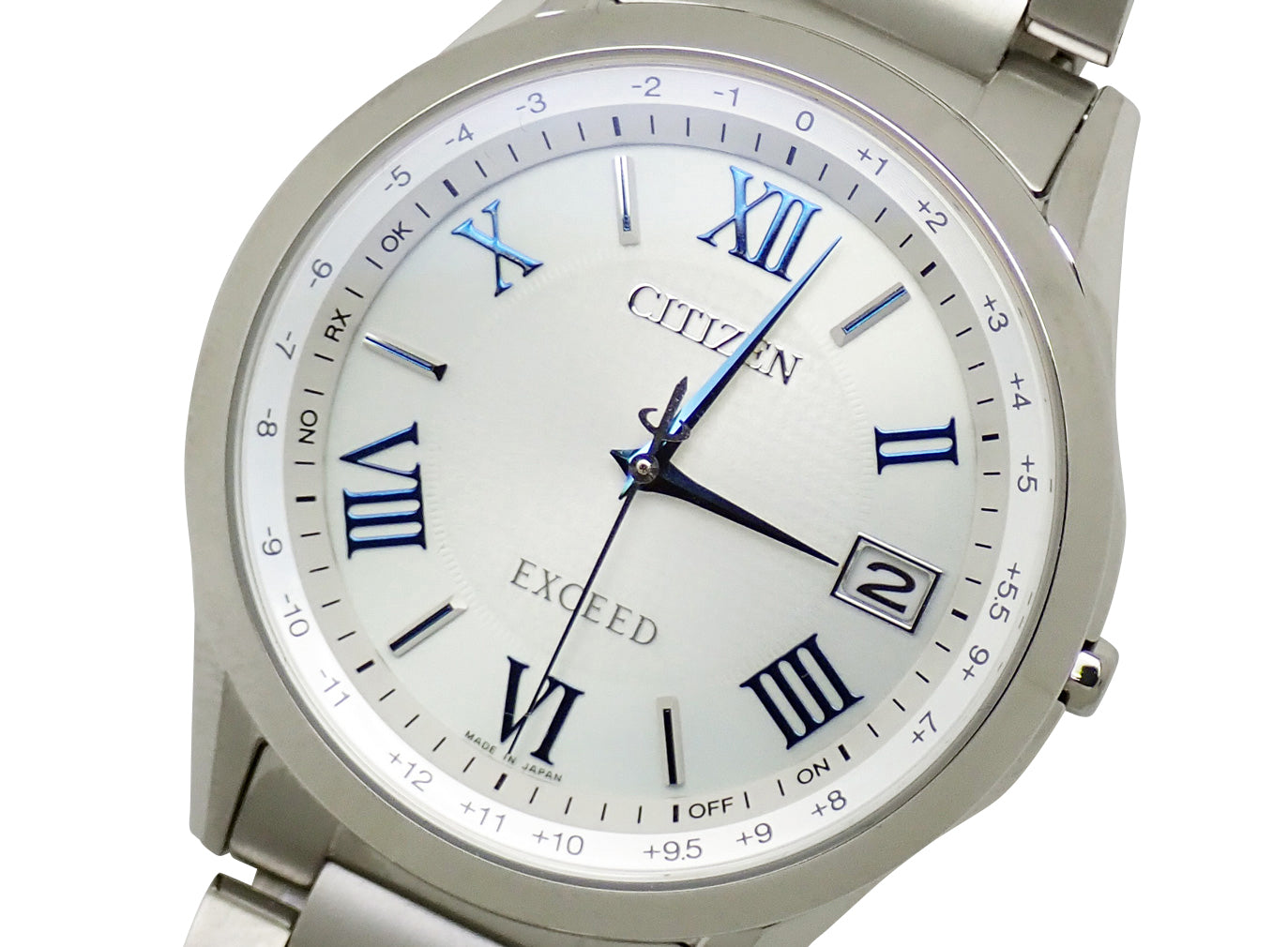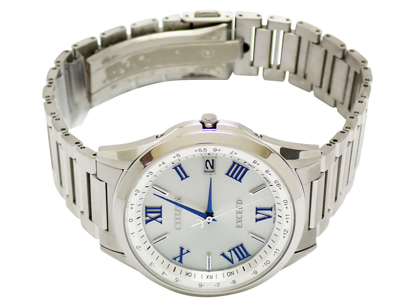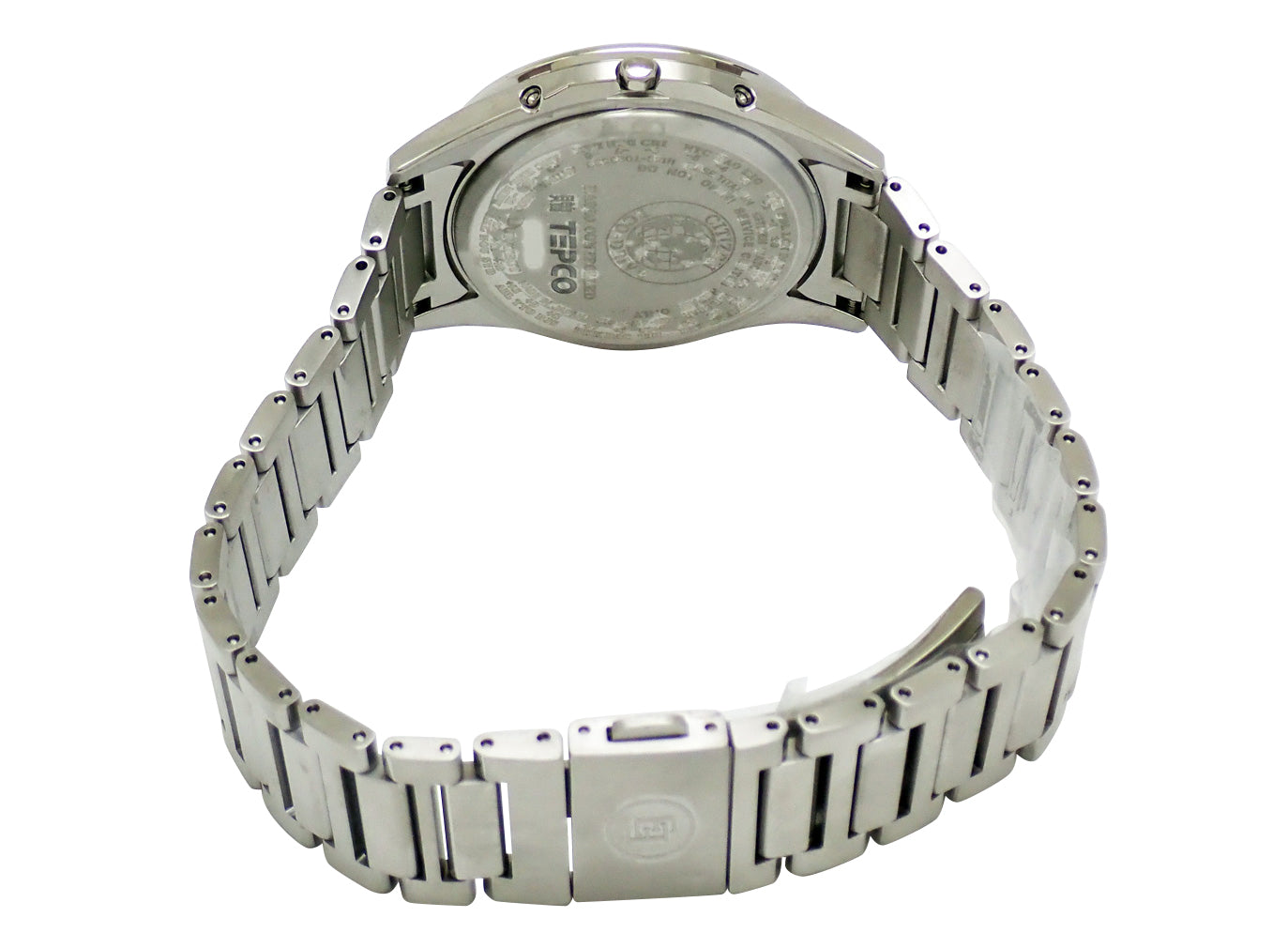 CB1110-61A。スーパーチタニウム。シルバー系文字盤。エコドライブ電波。ケース径38mm・腕周り21cm。税込定価¥121,000。ペア箱・保証書(未記入)付。