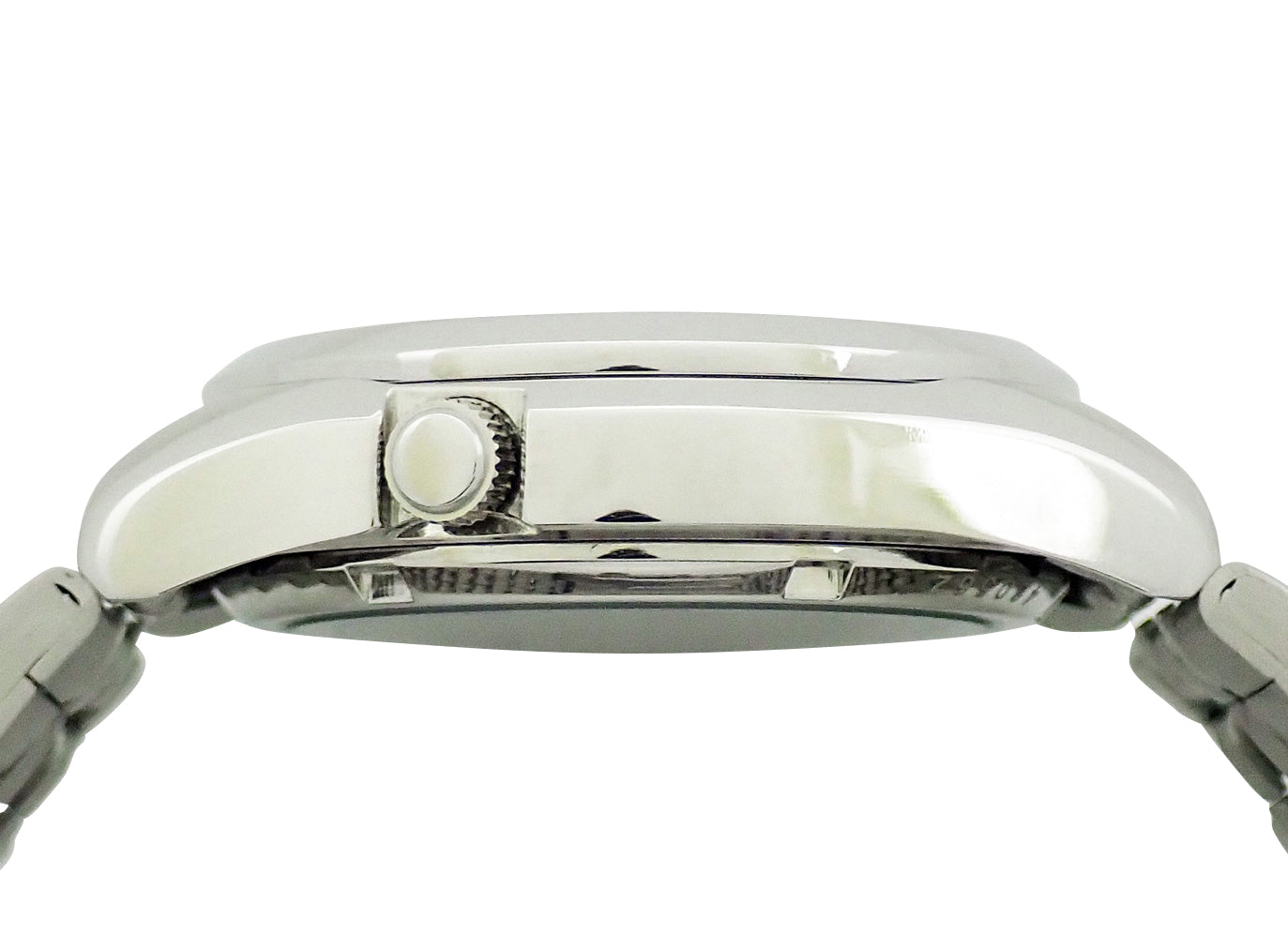 SS。黒文字盤。自動巻。ケース径37mm・腕周り21.5cm。箱・説明書付。
