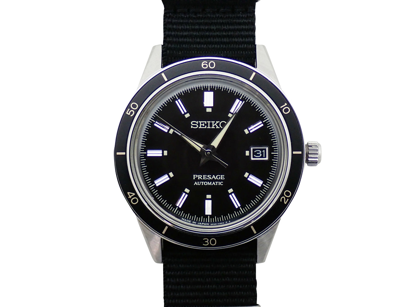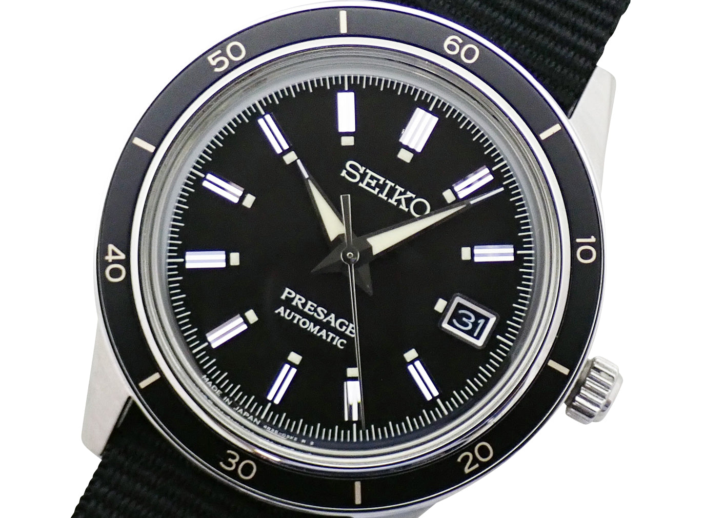 1960年代のSeiko vintage styleを原点に持つ新シリーズ Style60's。時代を越えて評価されるSeiko vintage style。その評価されている点を的確に捉え現代の技術で再現することで生み出されたシリーズ。ビンテージテイストを高めるBOX形状のガラスに加え、一部のルミブライト部も通常の白とは異なるビンテージテイストのベージュ色を採用し雰囲気を高めている。Cal.4R35搭載。