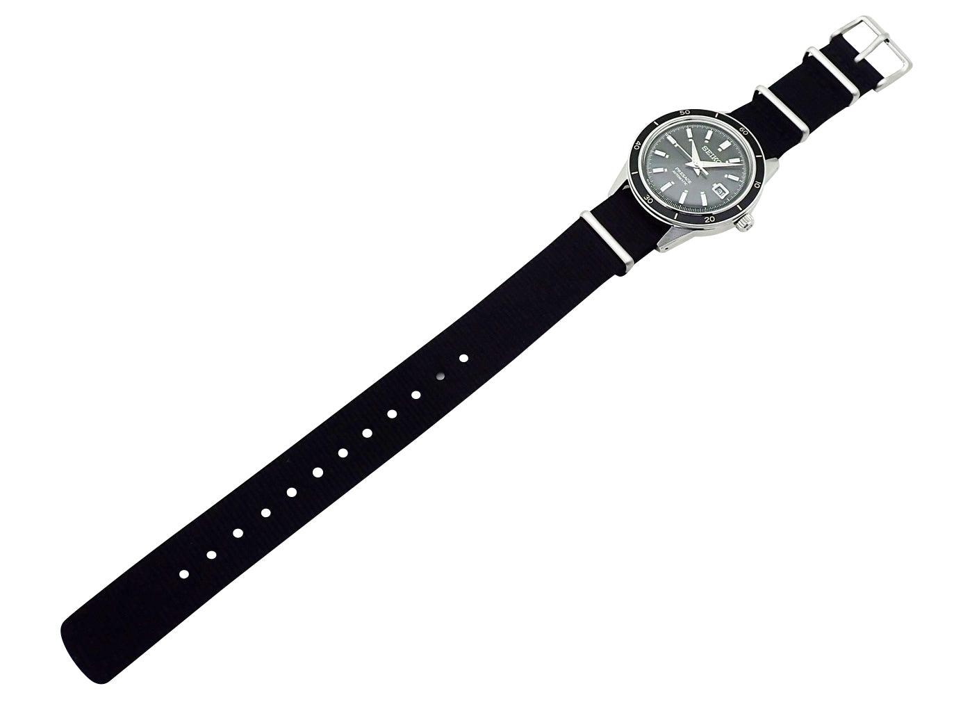 SS。黒文字盤。自動巻。ケース径40.8mm・腕周り24.5cm。税込定価¥55,000。純正ベルト・純正尾錠。箱・保証書(2021/12)付。