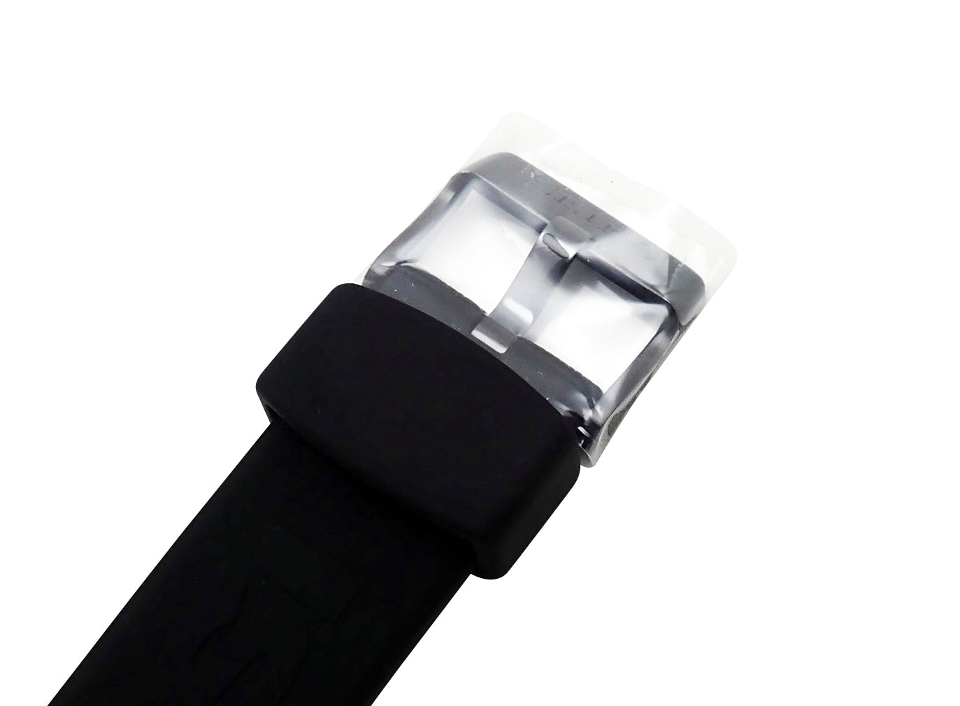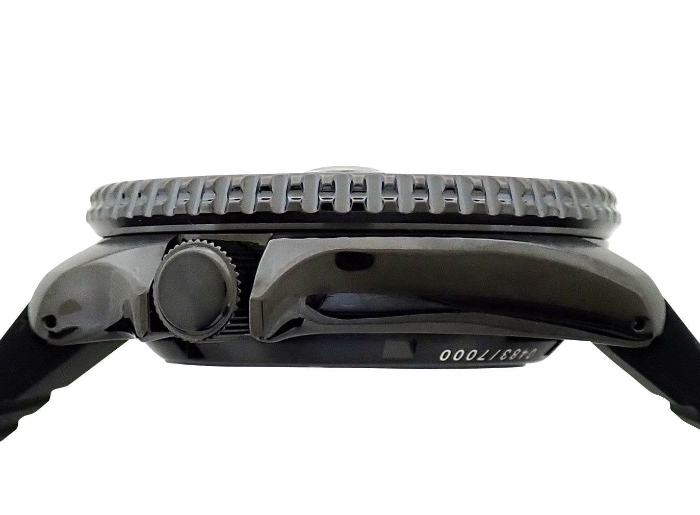 SS。黒文字盤。自動巻。ケース径42.5mm・腕周り21.5cm。純正ラバー・純正尾錠。箱・保証書(未記入)付。