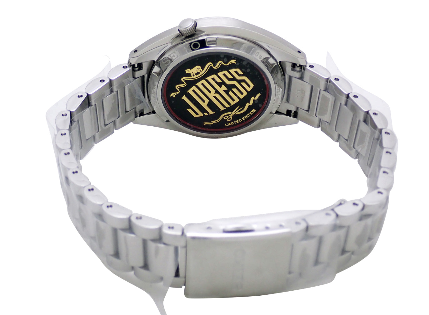 セイコー 5スポーツより、アメリカントラディショナルをベースとしたファッションブランドのJ.PRESSとのコラボレーション限定モデルが登場。SNXSシリーズをベースに、J.PRESSの世界観を落とし込み、特別仕様にアレンジした限定モデルです。裏ぶたにはJ.PRESSを象徴するロゴを施し、限定モデルの証である「LIMITED EDITION」の文字とシリアルナンバーを記した特別仕様です。国内限定500本モデル。