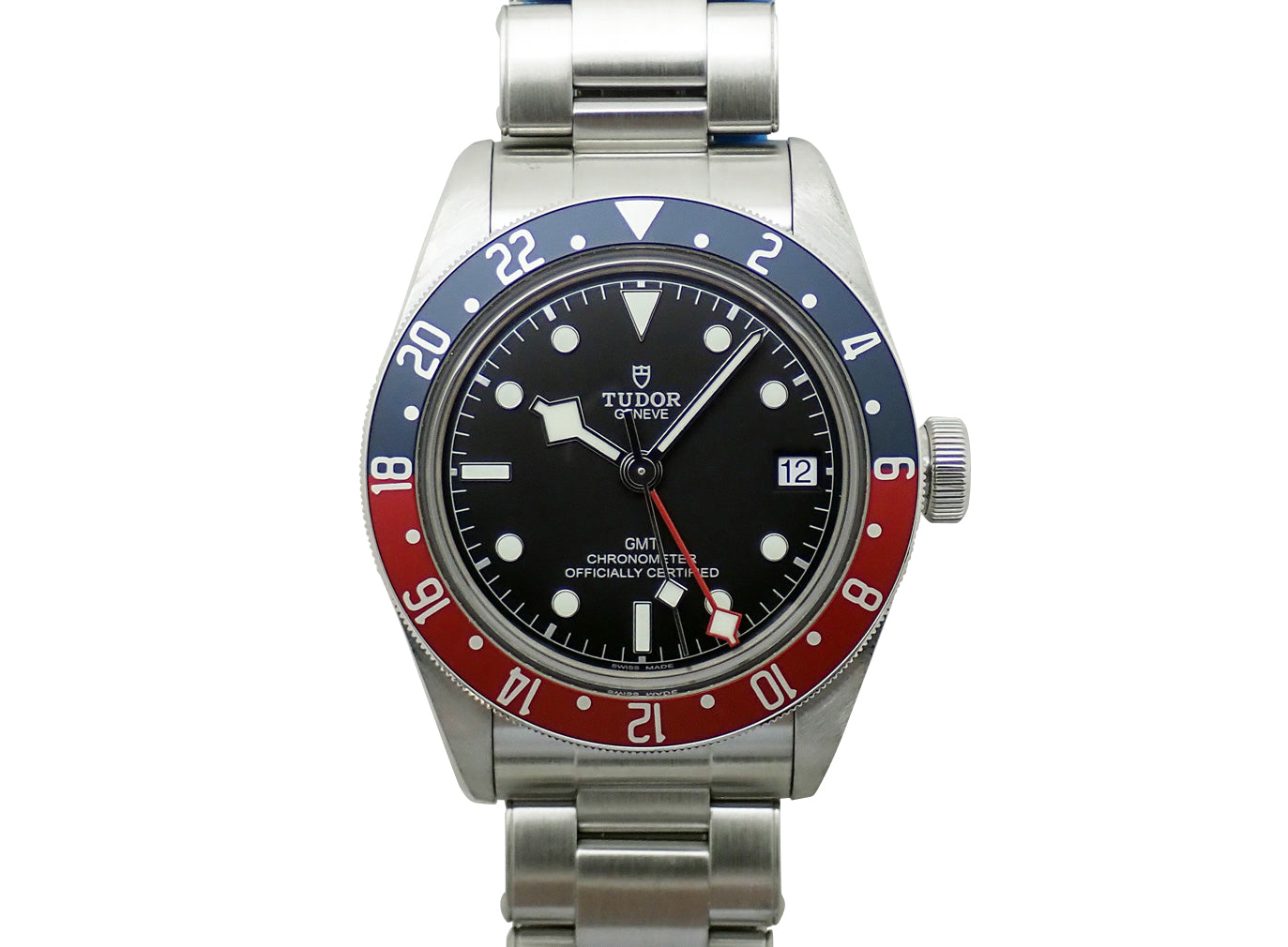 チュードルを代表するスポーツモデル「ブラックベイ」のGMTモデルの79830RB。ベゼルは人気の高いペプシカラーモデル。自社製GMTムーブメント「MT5652」を搭載。精密な機械式ムーブメントと堅牢な構造により、日常使いから特別な場面まで幅広く対応します。