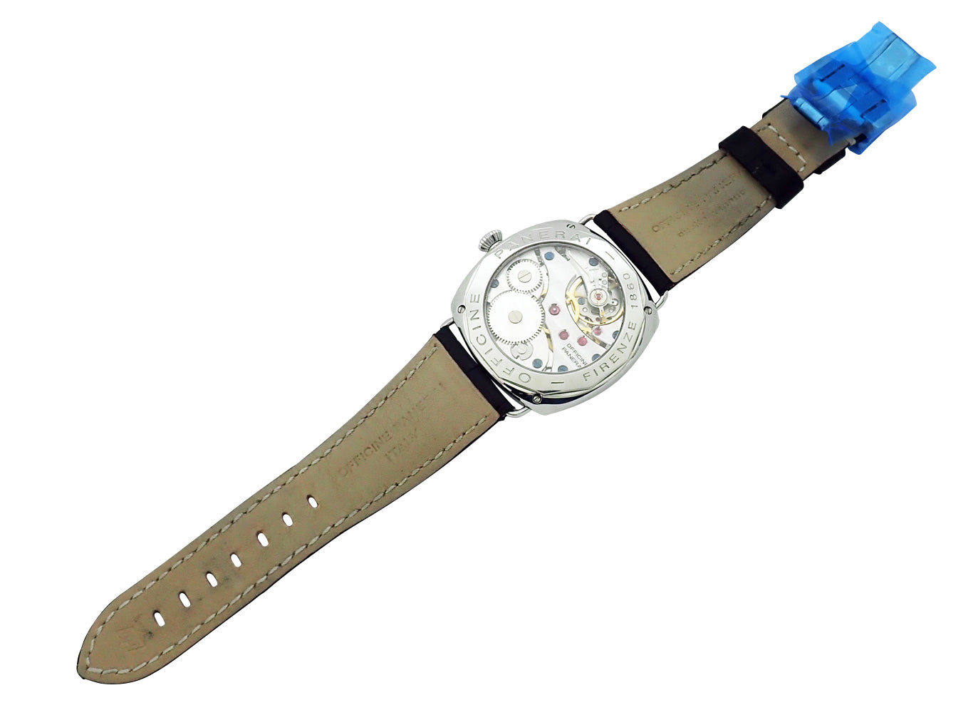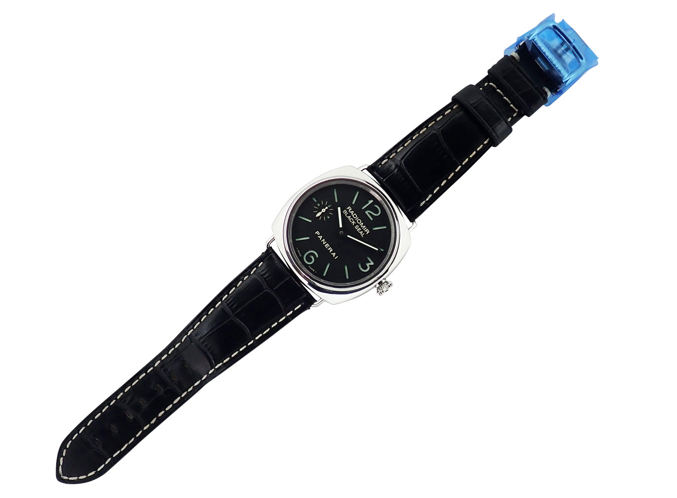 軍事用として1938年に開発されたパネライ“ラジオミール”。ラジオミールはルミノールと並んで人気を博するパネライの代表的コレクションです。パネライ特有のクッションケースにサンドウィッチダイヤルを備えているPAM00183。別売り純正Dバックルの付いた1本です。