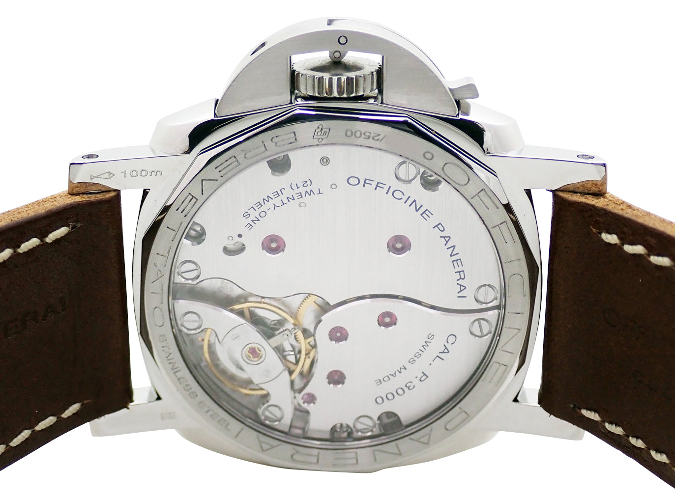 1940年代のルミノールケースをオマージュしたPAM00372。オリジナルを彷彿とさせるクラシカルなデザインにプレキシグラス風防を採用。72時間のパワーリザーブの自社開発ムーブメント キャリバー「P3000」搭載。47mmケースにシースルーバックから自社Cal.P3000を堪能出来ます。文字盤は立体感のある2層仕様。