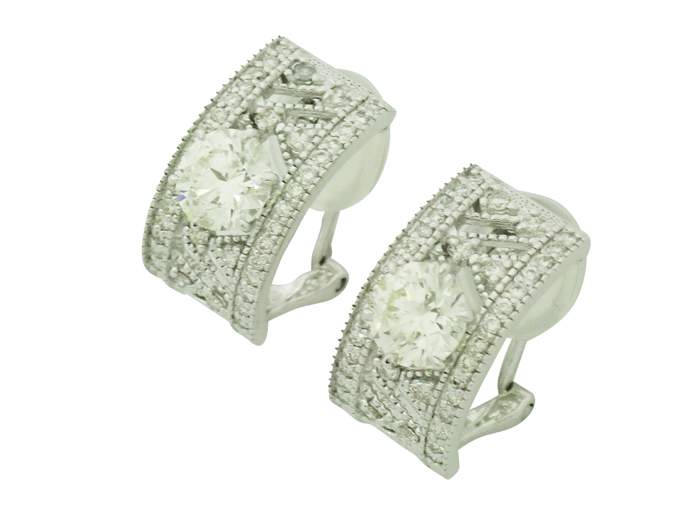 ピアス イヤリング K18WG ダイヤ 0.743 0.24/0.713 0.24 中古。
