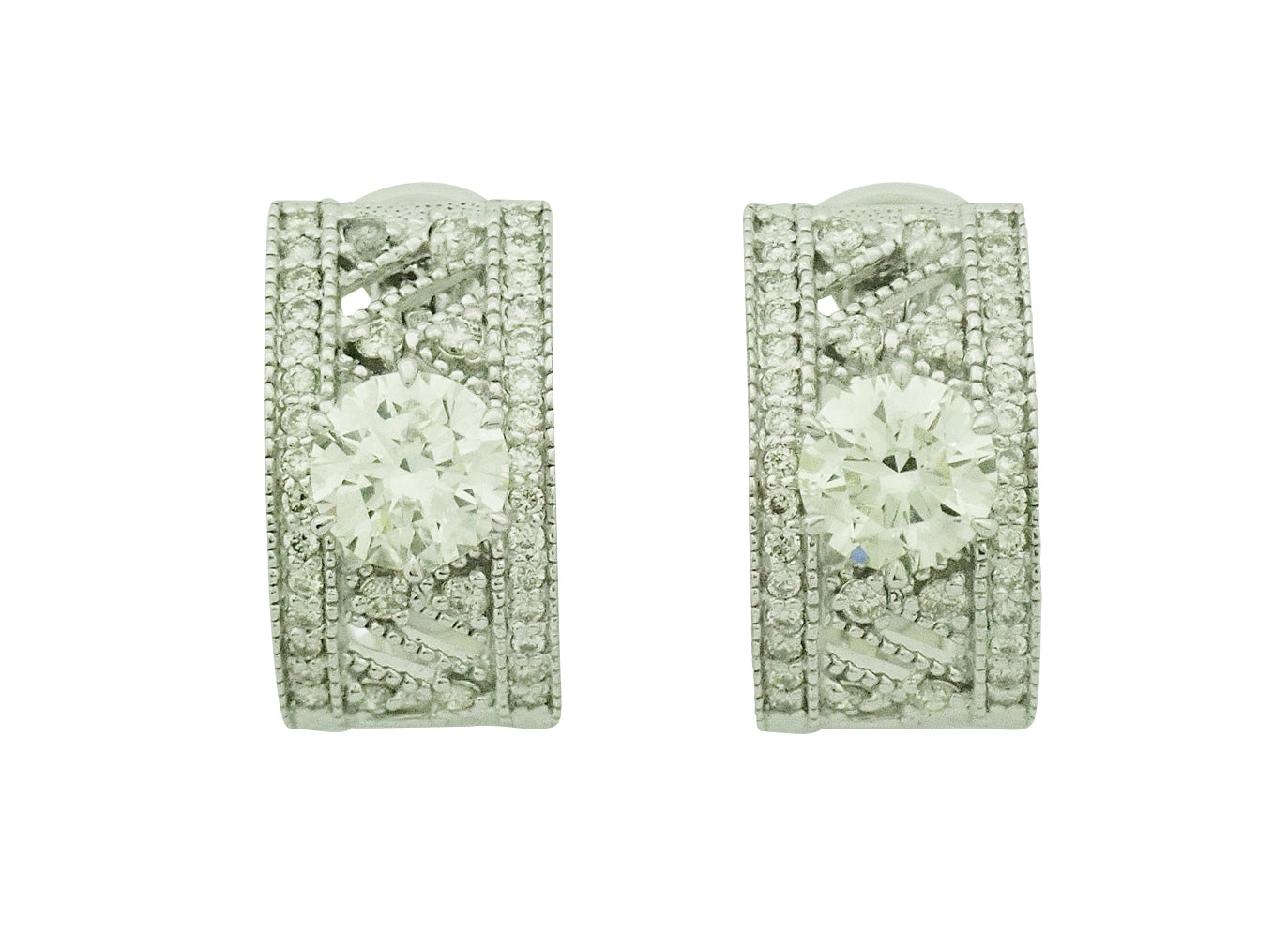 大粒のダイヤと全体に散りばめられたダイヤのラグジュアリーなイヤリング。存在感溢れるイヤリングは耳元を華やかな演出してくれます。ポストが折り曲がるのでイヤリングとしてもお楽しみいただけます。