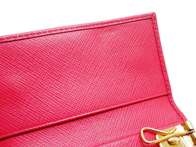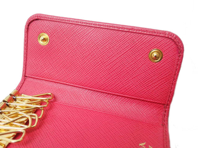 プラダ サフィアーノレザー 6連キーケース。上質なサフィアーノレザーにたっぷりの6連モデル。華やかなピオニア(ピンク)カラーモデル 。