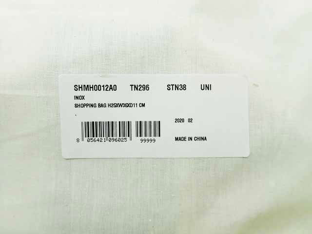 ナイロン/アルミニウム/カウレザー。イノックスグレー。44×24×12cm。税込定価¥18,700。紙タグ・保存袋付。