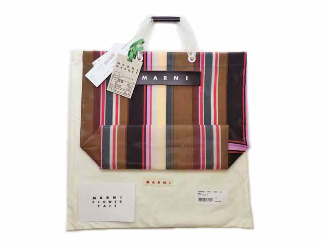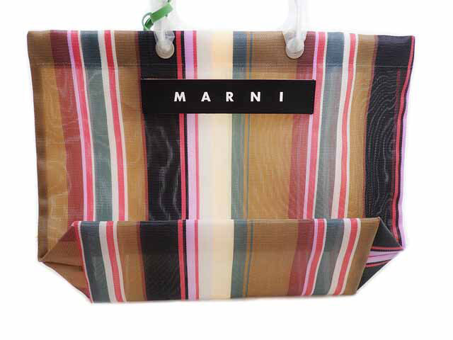 MARNI MARKET マルニ マーケット ストライプ バッグ トート マルチカラーブラウン SHMHR08A01 TN296STM24 未使用Sランク。