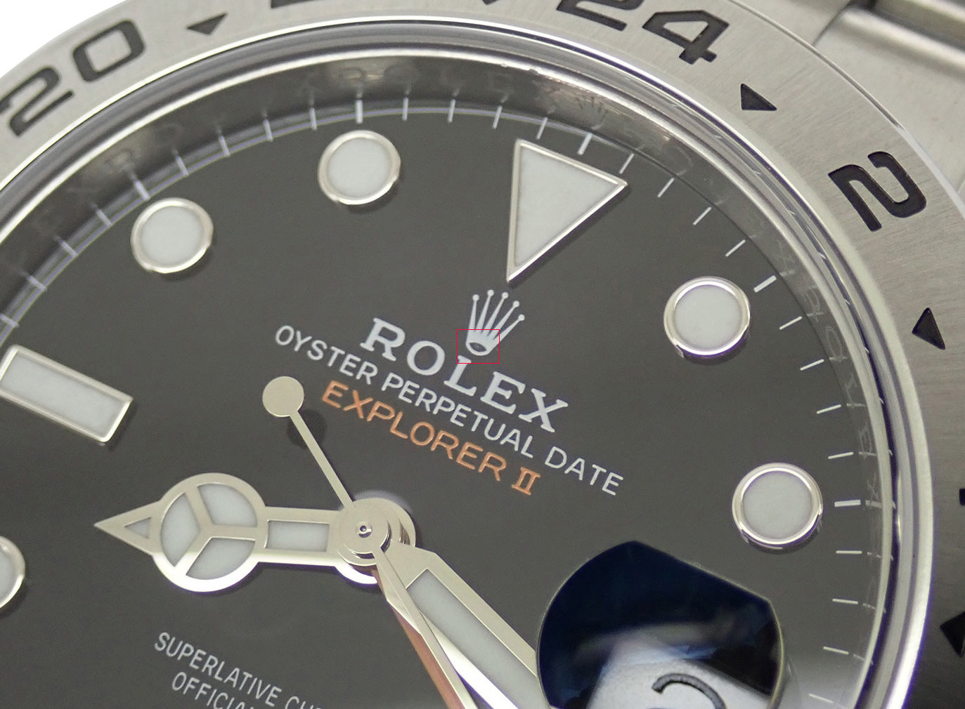 エクスプローラーIIは、日付表示、オレンジ色の24時間針、24時間目盛り入りベゼルを備え、昼夜の区別を可能にし、洞窟学者、火山学者、極地探検家たちに愛用される時計です。226570は216570に比べラグの形状が細くなり、ブレスレット幅が太くなりました。ダイアル6時位置が「SWISS 王冠 MADE」となり、針の根元が黒でなくなるなどの変更が見られます。