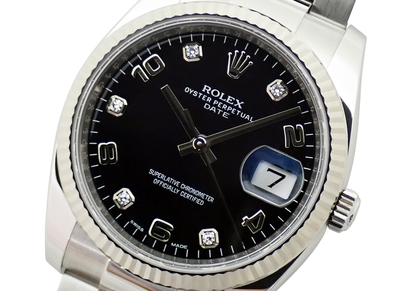 ロレックス オイスターパーペチュアルデイト 115234G SS/WG 5Pダイヤ 中古。