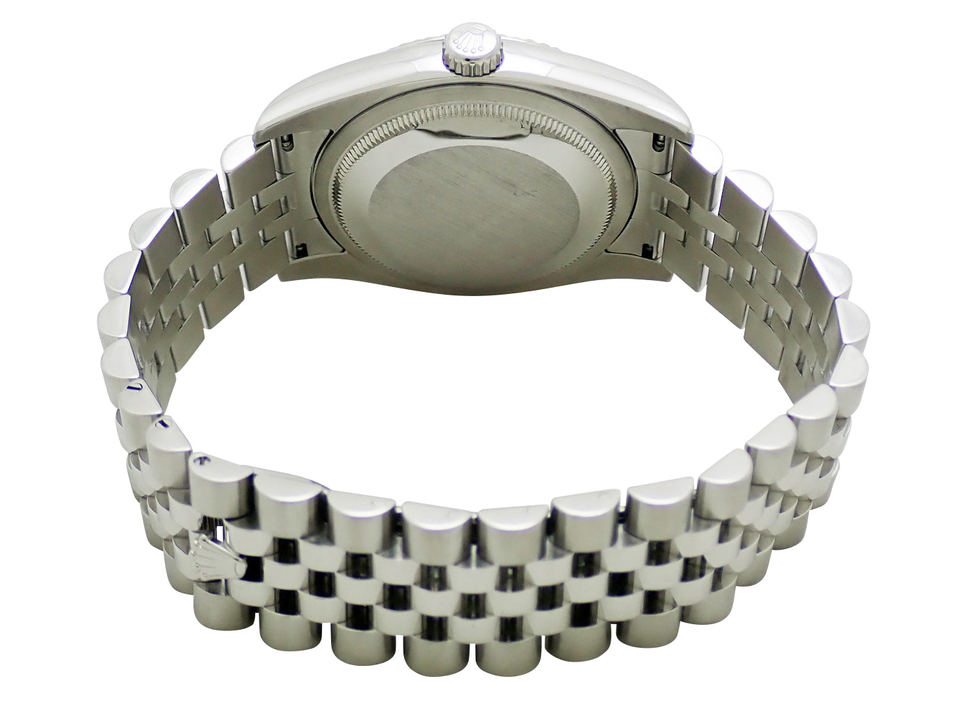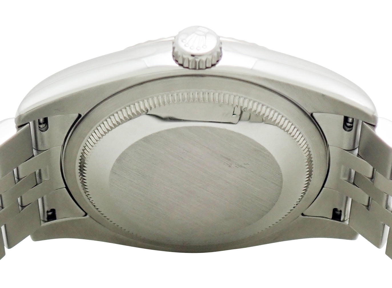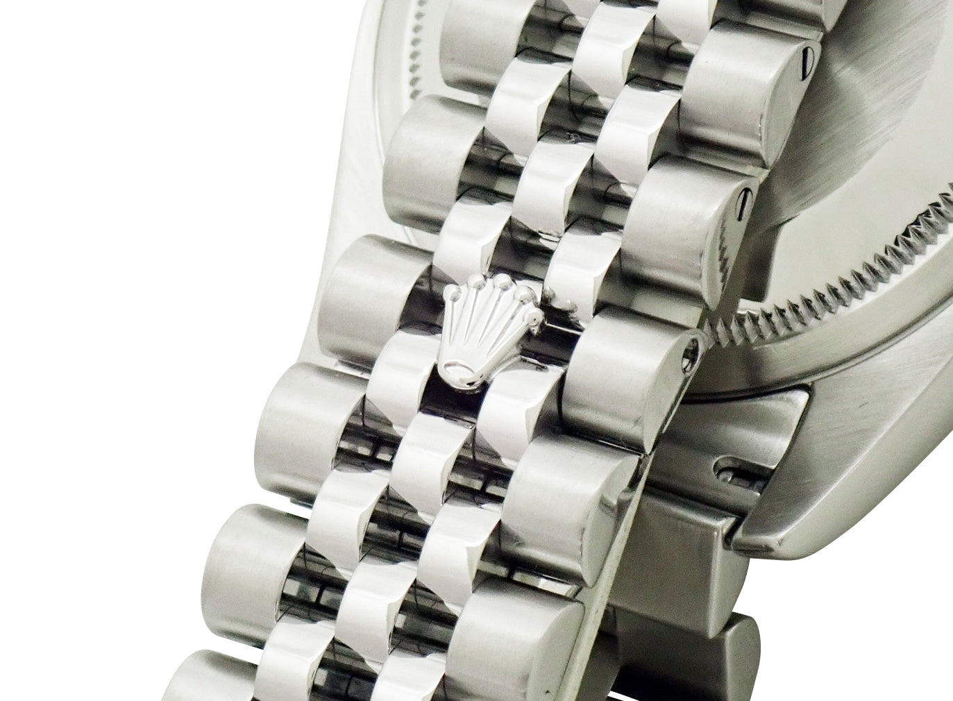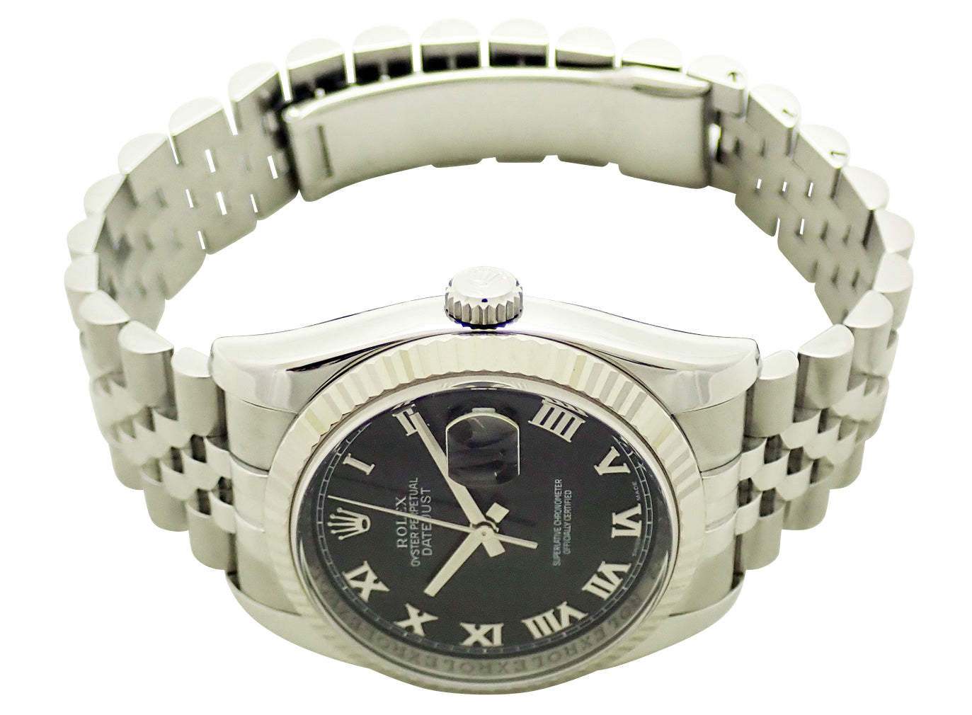 24時に日付が瞬時に変わる「デイトジャスト」機構を搭載したロレックスを代表するモデル。フルーテッドベゼルはWG素材、ラグジュアリーな演出をしてくれます。人気の黒ローマ文字盤。