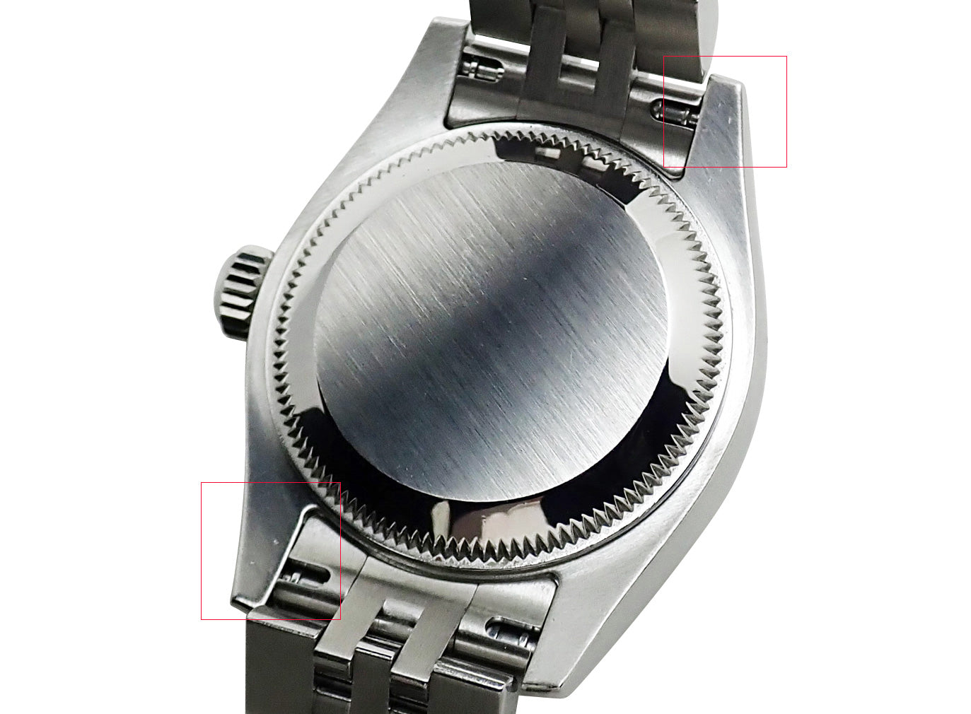 ベゼルに小傷、ラグ裏に小傷があります。また肉眼では分かりませんがガラスのレンズに小傷あり。その他は微細なスレ、小傷はありますが目立つ傷は見受けられません。仕上げ済み為、ケース、ブレス共に綺麗です。針、ダイアルも綺麗です。