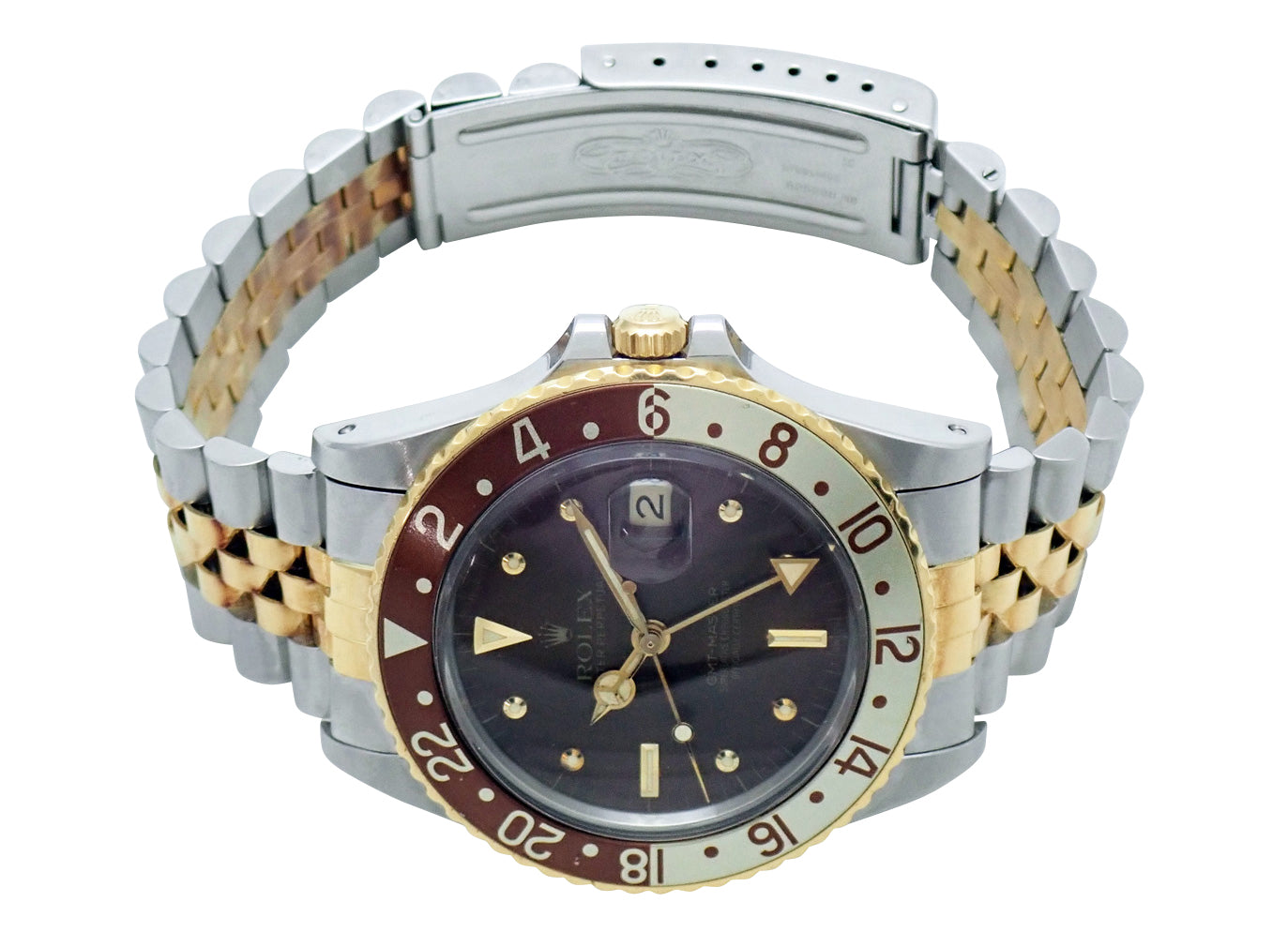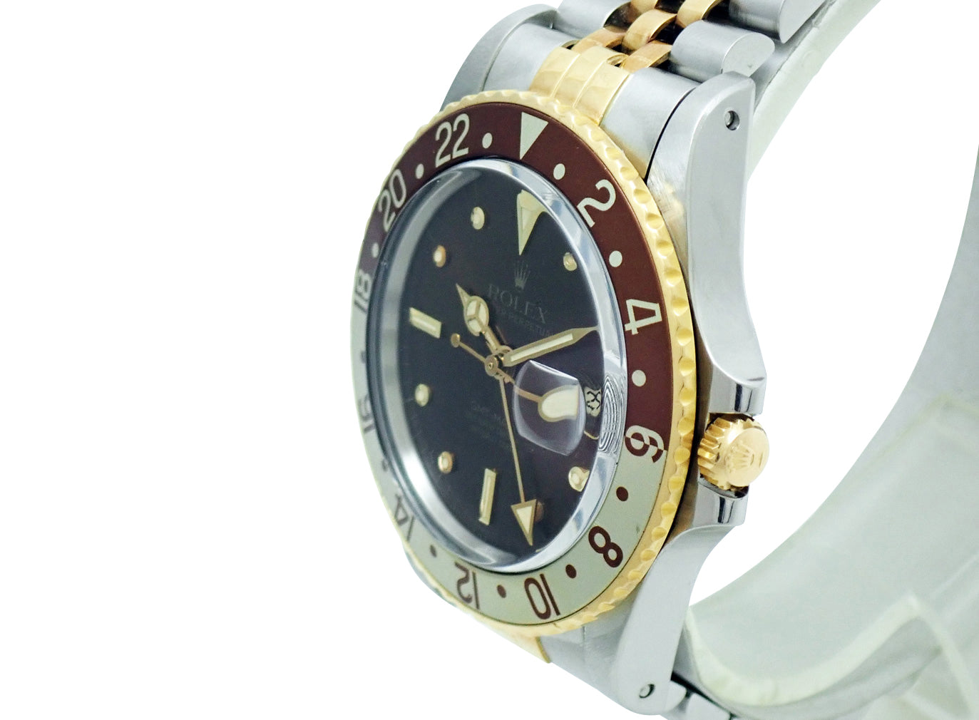 GMTマスターの中でも製造期間が短く希少性の高い、第3世代のコンビモデルRef.16753。通称フジツボで知られる特徴的なインデックス。人気のブラウンカラーモデル。ブレスレットの年代も一致しております。