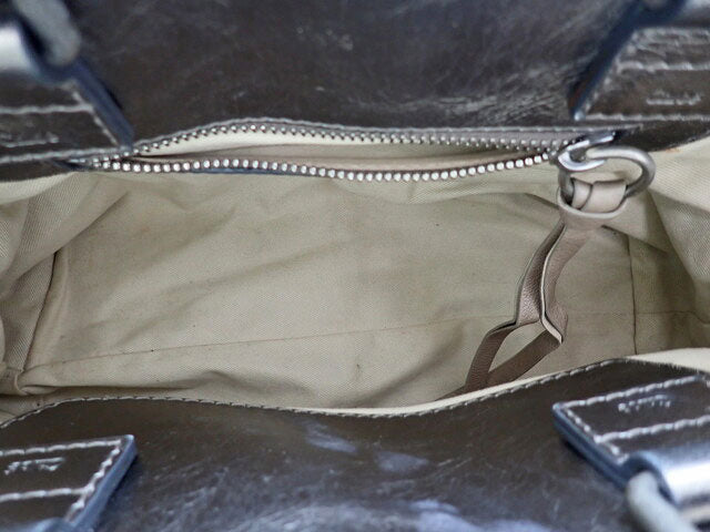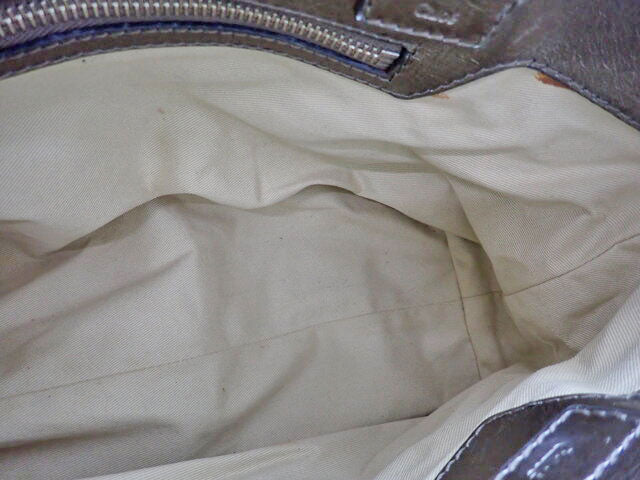 角、スレあり。レザー部分、スレ・傷あり。持ち手、色落ちあり。表右ポケット側、デニム地汚れあり。ファスナーレザーストラップ、貼り合わせ剥がれあり。中、使用による汚れあり。