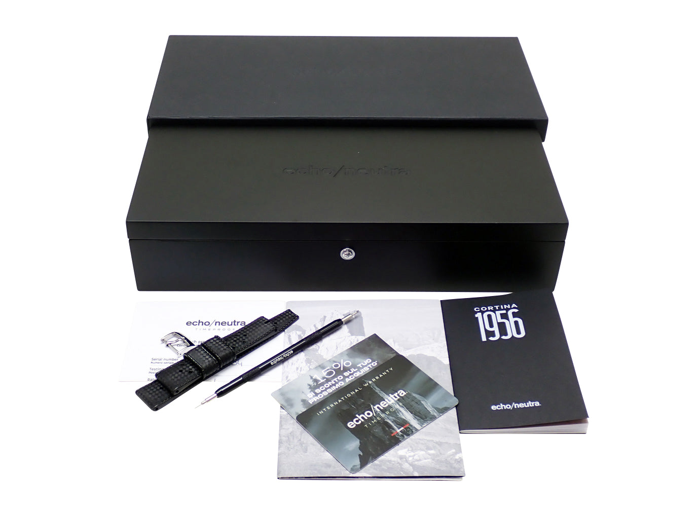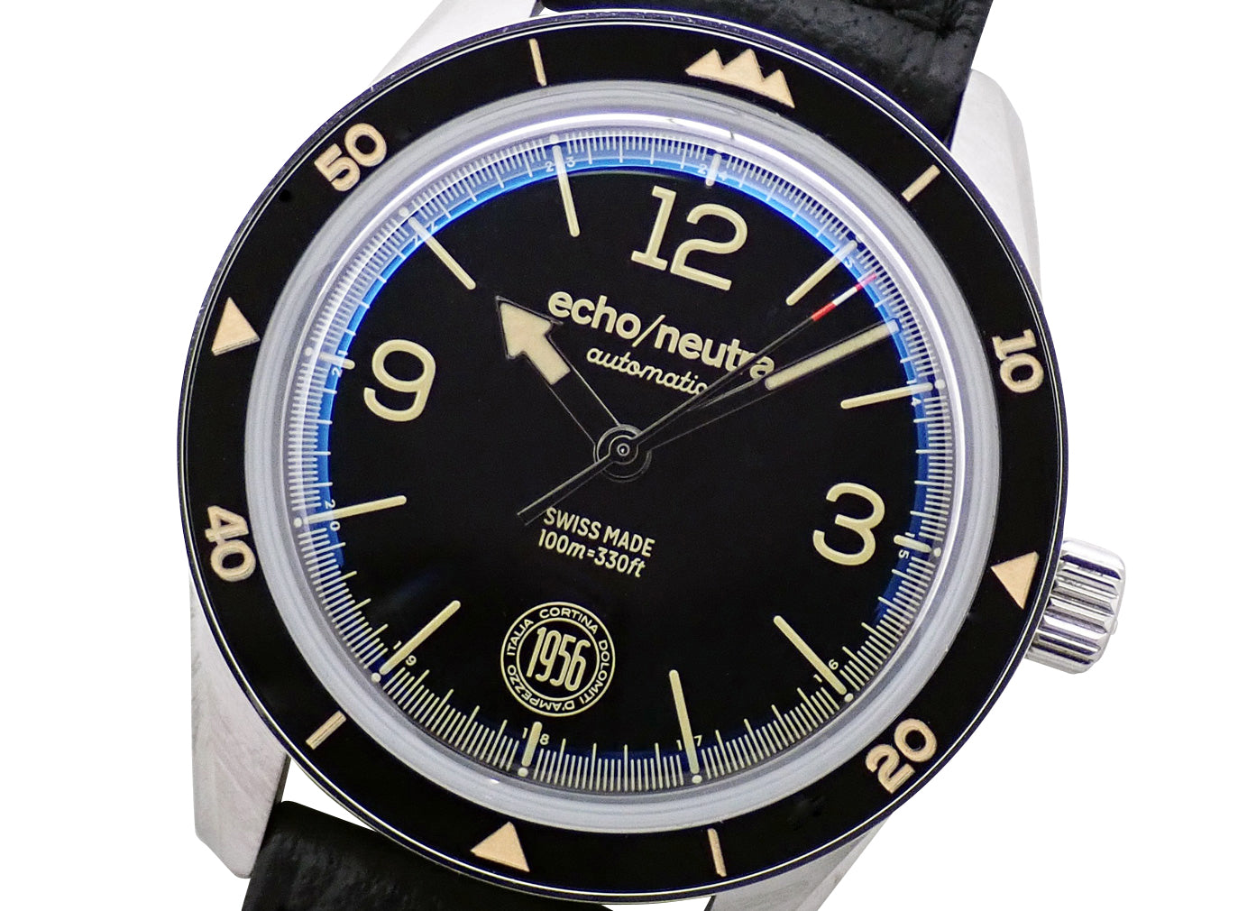 echo/neutra(エコー/ニュートラ)は、2019年にニコーラ・カレガロとクリスティアーノ・クアーリャの2人よってイタリアで設立された、日本未上陸の独立系ウオッチブランド。1956年にイタリアで初めて開催された、第7回冬季オリンピック競技大会“コルチナ・ダンペッツオ・オリンピック”にちなんだヴィンテージスタイルモデル。