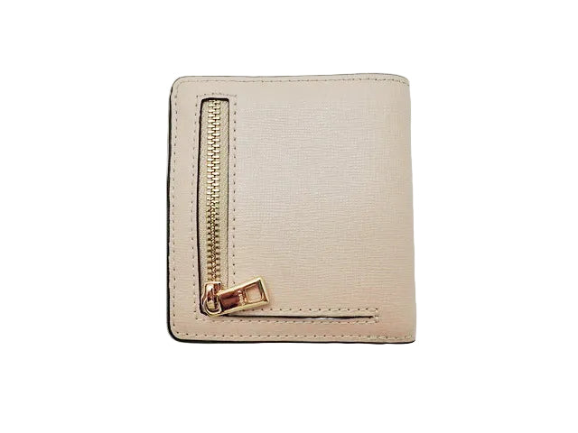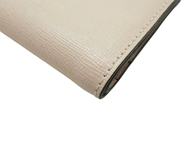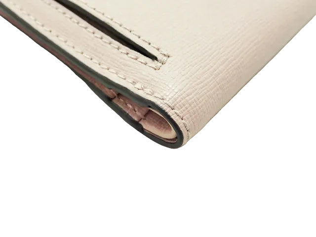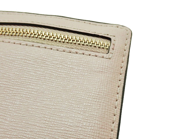 サフィアーノレザー。ヌーディーベージュ。ゴールド金具。9×9.5×1.5(左側のみマチ4cm)cm。付属品なし。