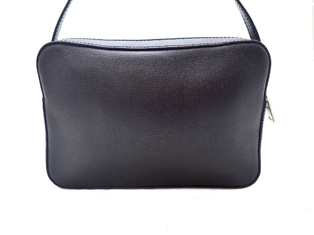 サフィアーノレザー。ブラック。ゴールド金具。22×15×7cm。ショルダーストラップ長さ117-135cm。付属品なし。