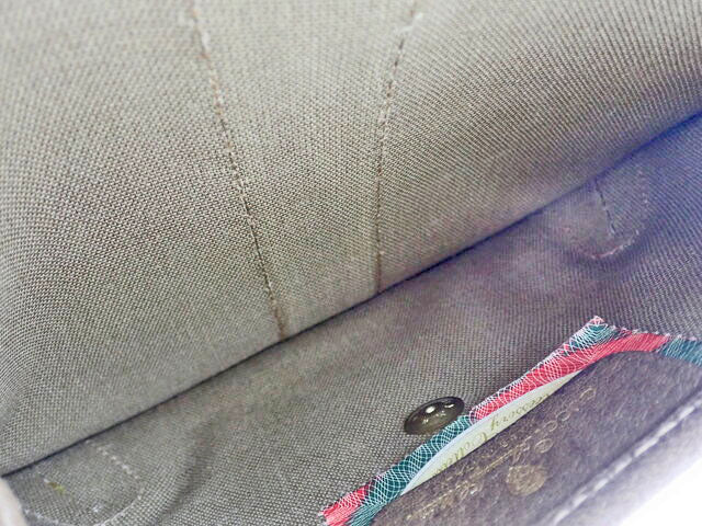 PVC/レザー。カーキ/ベージュ/レッド/グリーン。ゴールド金具。19.5×13×2cm。付属品なし。