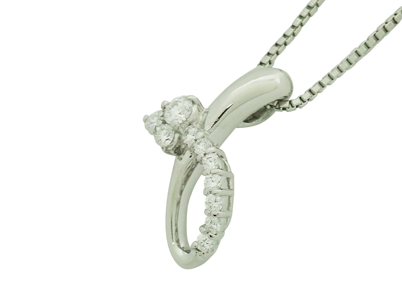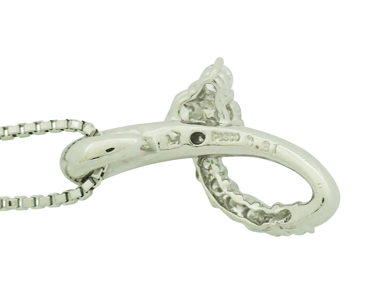 Pt900/850 ダイヤ 0.31ヘッド・約13mm×20mm、チェーン・約46cm。8.1g。付属品なし。