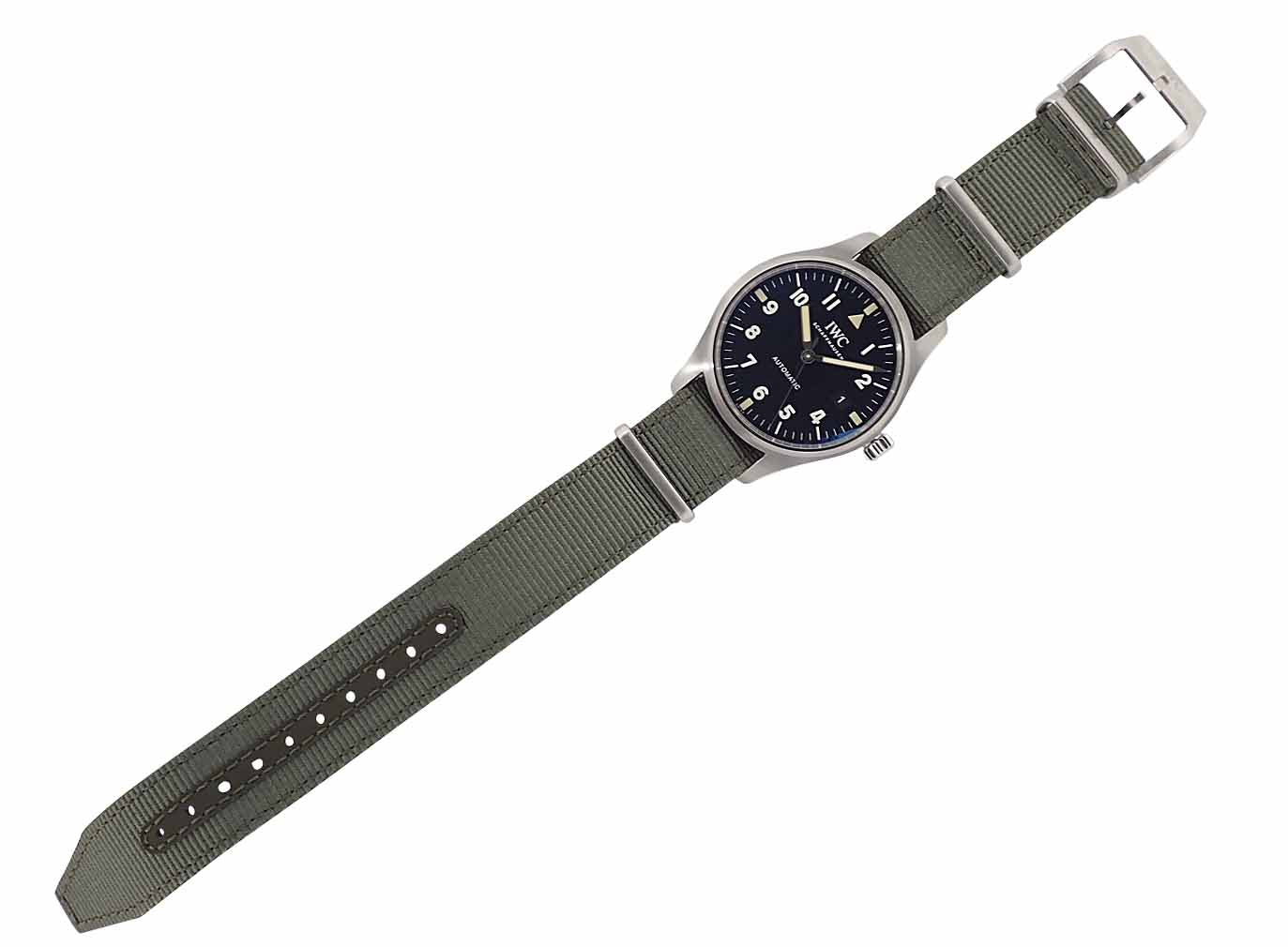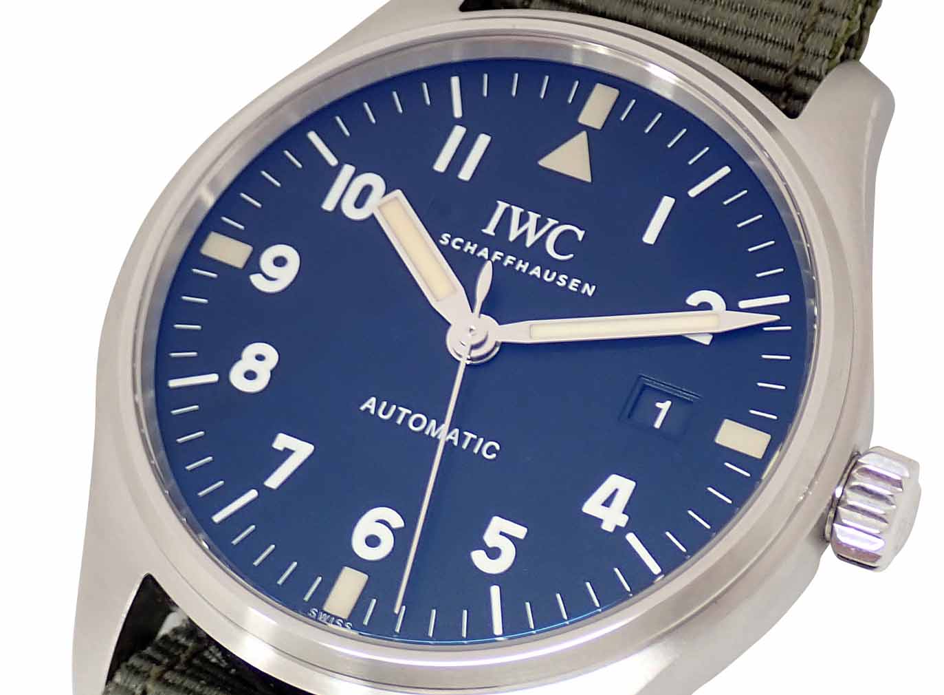 IWCのパイロットウォッチのマークXIのデザインを取り入れたマークXVIIIモデル。ケース径40mmにマークXIのデザインを取り入れた新旧融合モデル。ダイヤルインデックス・針は退色加工がされアンティークの雰囲気も楽しめます。世界限定1948本。