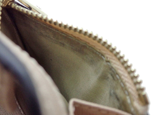 金具部分、傷・コーティング剝がれあり。気にならない程度の使用による型くずれあり。ポケット内、わずかに汚れあり。ストラップレザー、保管時の折れあり。