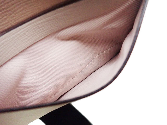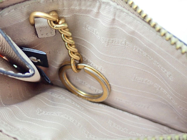 サフィアーノレザー(牛革)。ベージュマルチカラー。ゴールド金具。12.5×8×左側のみマチ4cm。箱付。