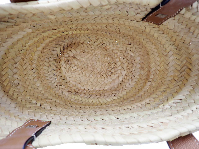 ヤシの葉/カーフ/パラジウム。ナチュラル/タン。シルバー金具。上部38-下部17×17×12cm。ハンドル高さ17-20cm。税込定価¥82,500。付属品なし。