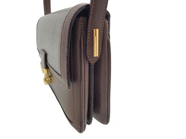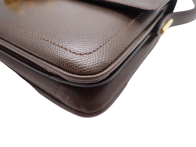牛革。ブラウン。ゴールド金具。27×17×4cm。ショルダーストラップ長さ56.5-62.5/97.5-102.5cm。付属品なし。
