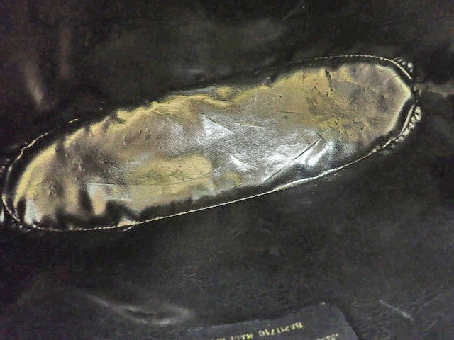 フチまわり、気にならない程度のスレあり。外面、わずかにスレあり。金具、スレ傷あり。中、引っかき傷あり。ストラップ、保管時の折りヨレ・金具、小傷・コーティング剝がれあり。