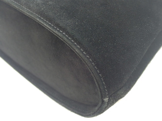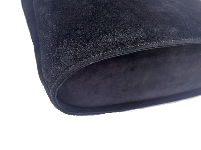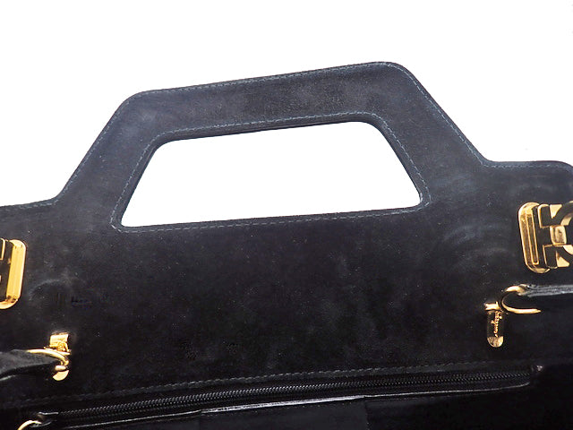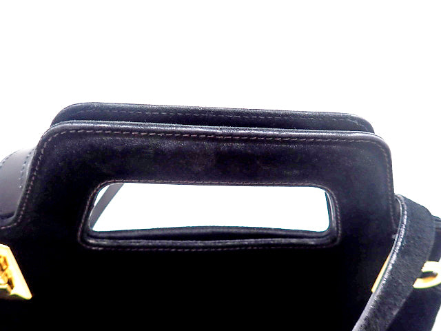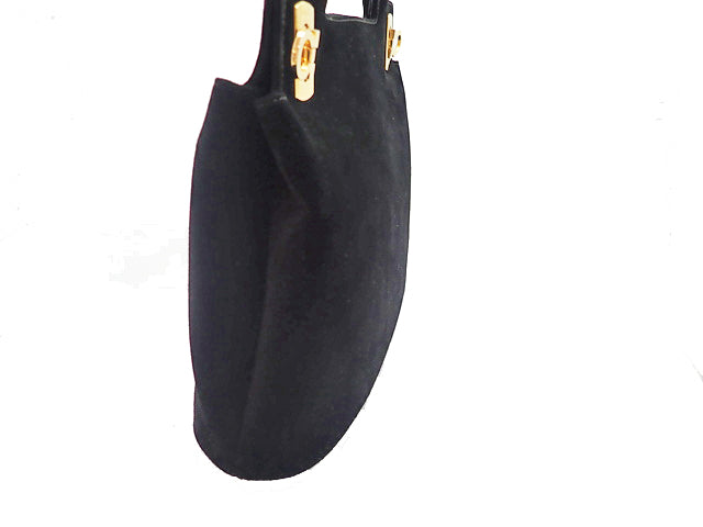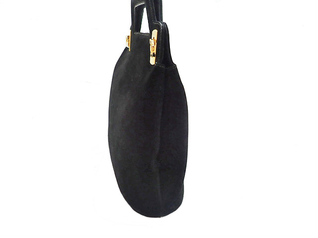 ヌバック スエード レザー/メタル金属。ブラック。ゴールド金具。上部25-下部29.5×22.5(ハンドル含む28.5)×10cm。ショルダーストラップ長さ101-109cm。ショルダーストラップ。保存袋付。