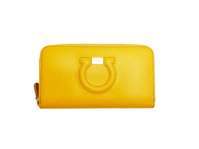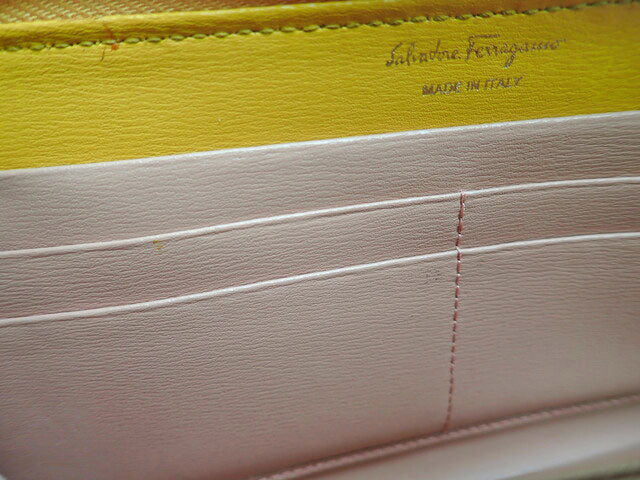 Salvatore Ferragamo サルヴァトーレ フェラガモ GANCINO ガンチーニ Round Zip Long Wallet ラウンドファスナー長財布 JL-22 C843 中古ABランク。
