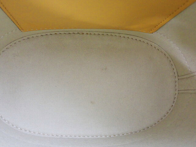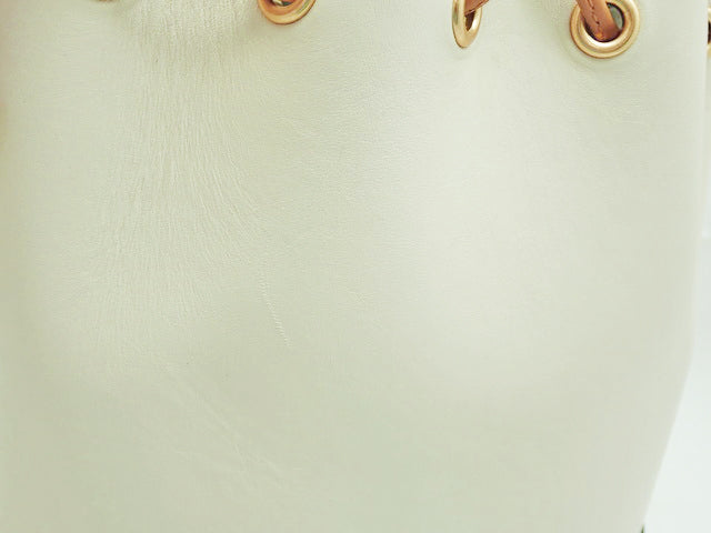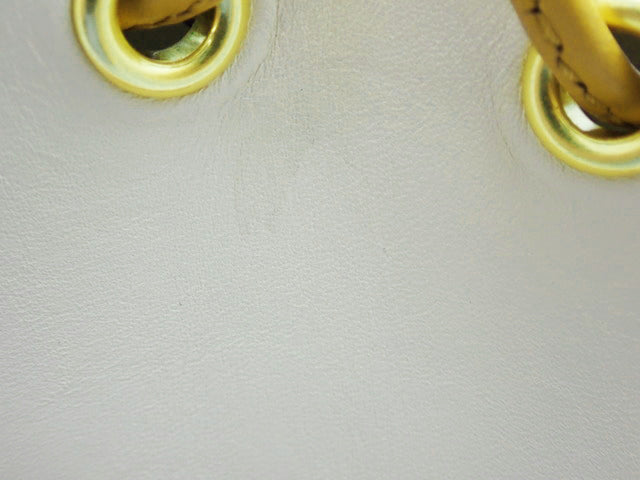 金具、スレ・小傷・気にならない程度のわずかにコーティング剝がれあり。巾着ストラップ、スレあり。表、真ん中上部、わずかに汚れあり。中、わずかにスレ傷・汚れあり。持ち手、気にならない程度のシミあり。取り外し/調整可能レザーショルダーストラップ、反り・気にならない程度のシミあり。